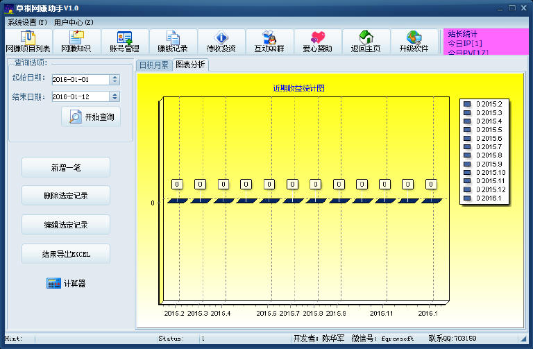 草根网赚助手是一款网赚管理和介绍类软件,适合想在互联网上面赚钱的新手。许多网友在学习网赚时经常上当受骗,本软件详细介绍了目前网上一些可靠真实的网赚信息,让您不再浪费时间,同时可以管理众多的账号,用本软件可以很方便的记录网赚的难苦生涯,管理网友在网赚当中点滴,让大家在网赚中更得心应手赚了-趣了,让网赚变成一个享受的过程,是网赚不可以缺少的一款实用性工具。