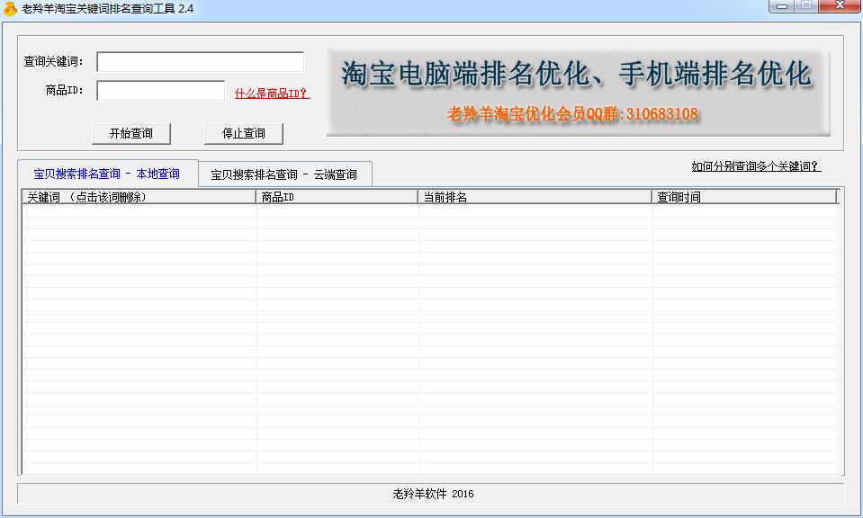 老羚羊淘宝关键词排名查询工具是一款专门为淘宝卖家设计制作的淘宝宝贝关键词批量查询软件,这款软件功能强大,操作简单。这款淘宝关键词排名查询工具能完全模拟淘宝查询条件进行查询,可根据淘宝卖家需要查询卖家店铺中所有宝贝的某个关键词,让你更有针对性的进行排名优化。是淘宝店家的一款实用助手。