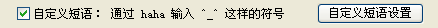 自定义短语是通过特定字符串来输入自定义好的文本,自定义短语在设置选项的【高级】选项卡中,默认开启。点击【自定义短语设置】即可。其界面如图: