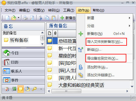 四,备忘模块能在一个软件界面和一个文件中管理您的多篇备忘、笔记和文档信息。
