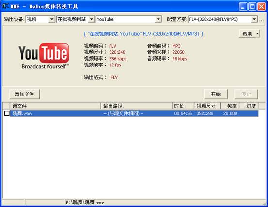第三:选择好输出路径后,即可点击“开始”来完成视频转换。转换好的视频格式为*.flv 格式。用此格式的视频,您可以直接去个人空间上传了。