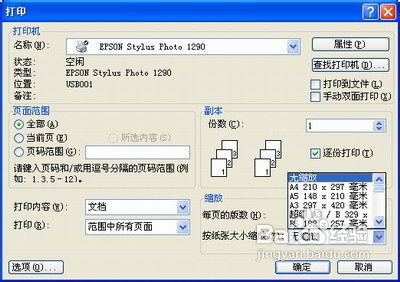 或许,你编辑表格所用的软件没有提供“缩放”打印的功能,比如有的财务软件生成的B4纸型的会计报表怎样打印到A4纸上呢?此时,我们可以直接求助所用的打印机,将打印机设置为缩小打印。现在,我们以EPSON Stylus Photo 1290打印机(操作系统为windows xp SP2)为例进行说明。