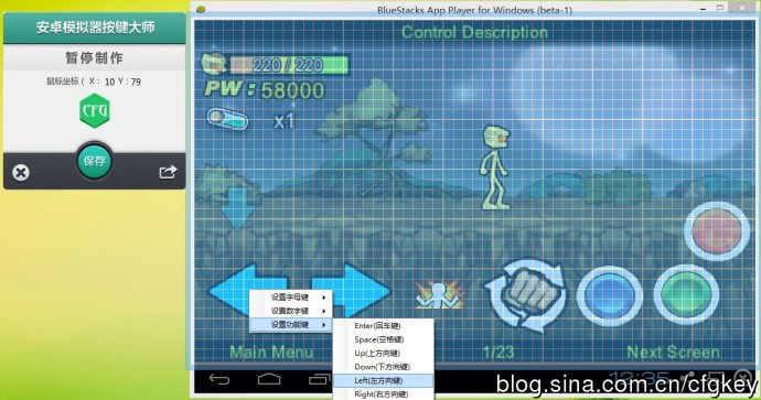 下面我们来测试一下旋风腿。工作压力大时,用来发泄一下很不错。我把出腿的按键设置成空格,砸起来比较爽。