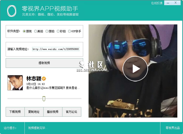 完美支持微视、美拍、微拍、秒拍、GIF快手等APP中的视频提取。提取的视频可以播放也可以下载保存。