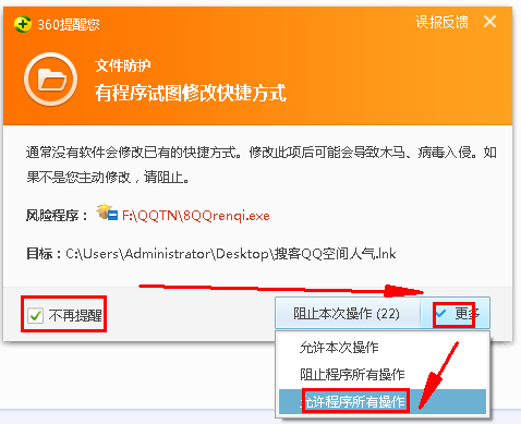 安装搜客QQ空间人气360会拦截,如继续请运行其通过