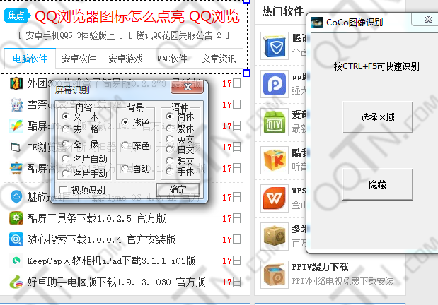 1、打开工具之后,选择识别区域,按快捷键Ctrl+F5快速识别