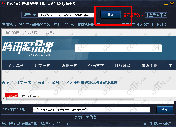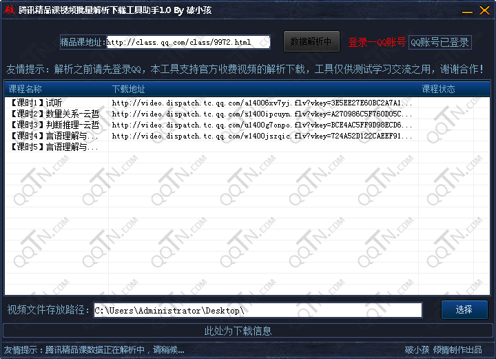 2、支持腾讯精品课所有课程解析,收费视频也可以。