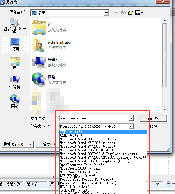 文档另存为,可以保存为Word所有版本格式