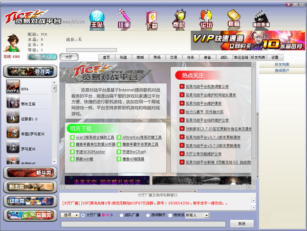 2、大厅左侧边为热门游戏、新增游戏、任务游戏三块组成,点击相应的图片即可快速进入所选择的游戏大厅。
