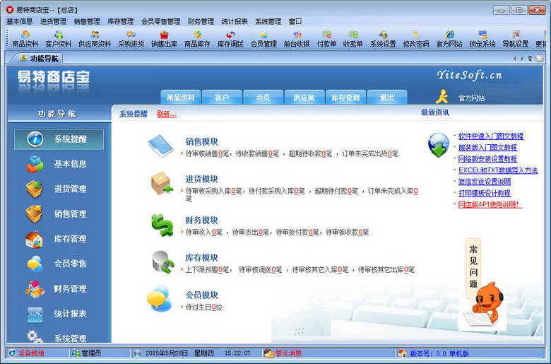 易特商店宝是一款免费的店铺管理软件,这款软件简单好用,为你提供商店进销存管理服务,它面向个体工商户,个人记帐等,功能不限,永久免费在线升级,功能包括采购进货,销售,单据打印等,并能自定义设计打印单据模板,随心所欲设计自己需要的打印格式。