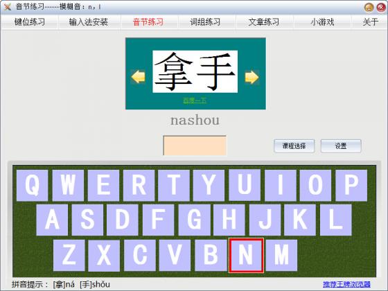 4、此软件的练习过程中,都有汉字对照的拼音提示,键位提示,你不用担心不熟悉某些汉字的拼音,就算是多音字都会有相应的拼音提示。