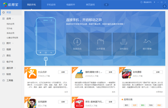 PS:如果您是USB数据线连接电脑,不用担心要在手机上安装应用宝哦,您在连接过程中应用宝PC版会自动帮您在手机上安装应用宝完整版的。
