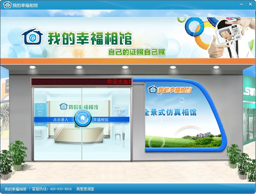“我的幸福相馆”模拟传统照相馆的服务场景,利用现代科技打造网络仿真相馆,以“我的幸福相馆”为广大群众提供相片自拍、相片管理、相片冲印、相片制作等个性化便民服务,打破传统相馆的服务局限,倡导“足不出户”的绿色低碳生活。