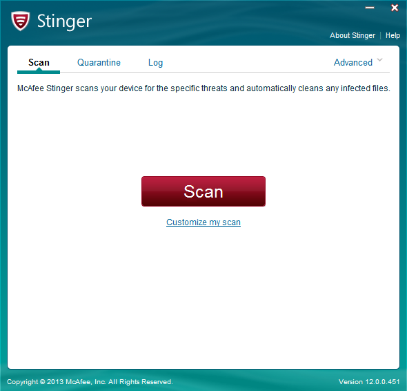 McAfee AVERT Stinger是McAfee(迈克菲)公司的一款用来检测和查杀特定病毒的独立软件。不同于实时防病毒那些杀毒软件,它更是能对付已经受感染的系统。在新一代的扫描引擎帮助下,能进行进程、数字文件扫描,并且大大提升了扫描速度。