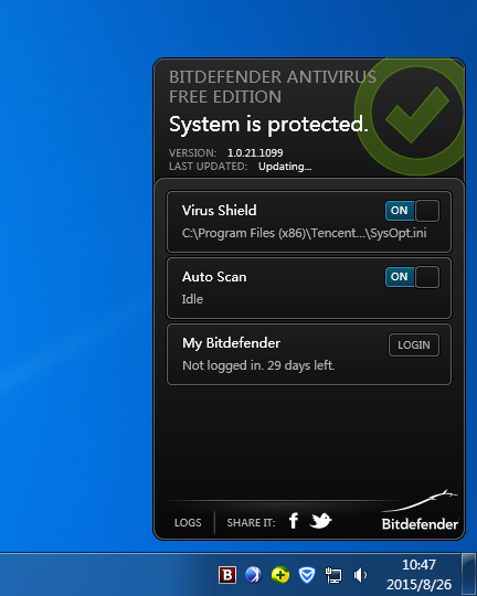 Bitdefender Antivirus Free Edition 提供一个完整、轻巧又免费的系统保护机制,安装后会常驻在系统背景运作。