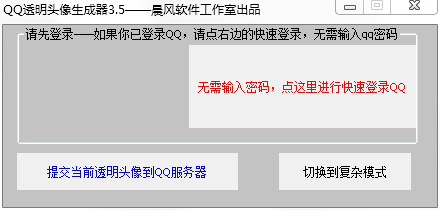 QQ透明头像生成器是晨风软件工作室出品,使用本工具登陆QQ号,将所需透明图片传到QQ服务器中即可实现,享受透明头像从现在开始。