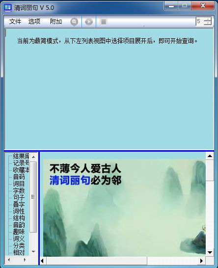 清词丽句软件是一款功能强大的软件,在这款软件不仅仅只有诗跟词,软件里面还有歇后语、俗语、成语、英语单词、英语短句、英语名句,资源量非常大,还有极其精确的查询的功能,并且有图文并茂的释义,是一款不可多得的实用软件。