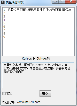 这款悦生活剪贴板是一款实用工具,能记载最近9次仿制的信息。