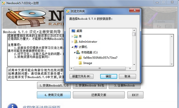 然后选择一下NeoBook5.7.0的安装目录。如果目录选择正确,会弹出应用成功提示窗口。