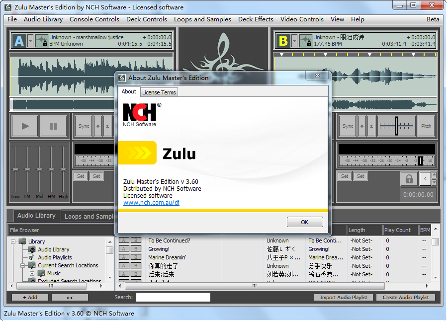 祖鲁DJ大师Zulu DJ Software Masters Edition 是一款高级的DJ软件。祖鲁虚拟DJ软件是为业余和专业的DJ的DJ完整的软件解决方案。美国与一个易于使用的界面,强大的功能,使混合喜爱的曲目容易。祖鲁让你混合您的音乐生活,同时将在飞行的影响。