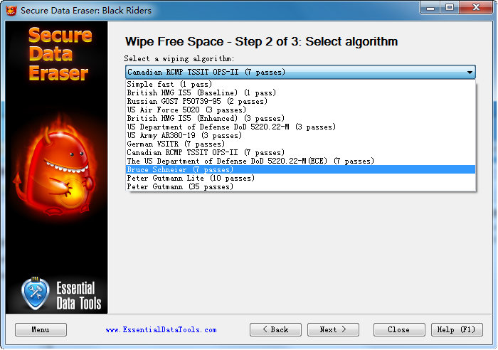 3. 国防部5200.22M(8-306 / E) - 填充在3次通过一个特殊的号码模式。慢。很安全。 *