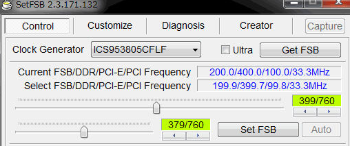 SetFSB不能更改处理器电压,分频比例,内存的CL值等参数,