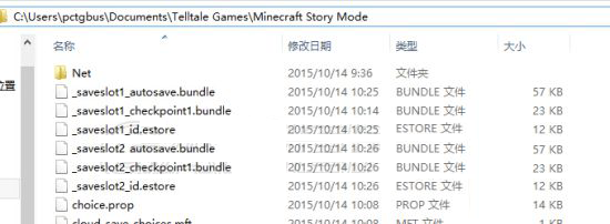 如图所示,游戏默认存档位置是在C:\Users\pctgbus\Documents\Telltale Games\Minecraft Story Mode,“pctgbus”为计算机用户名。
