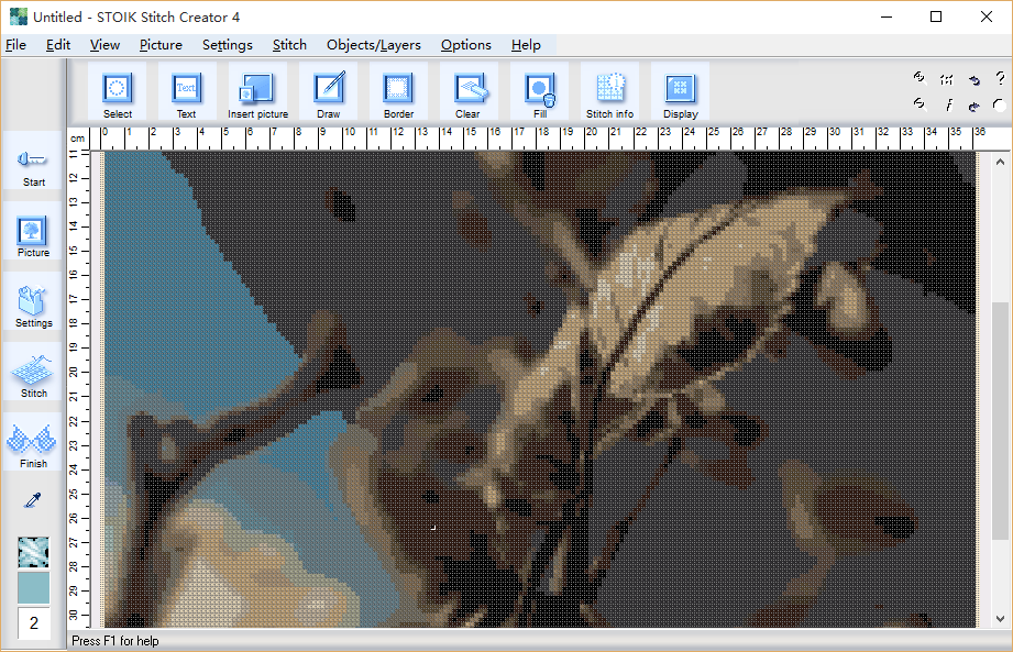 - 指定所需的牙线的调色板,让STOIK针造物主把你的图片变成一个优化的十字绣图案