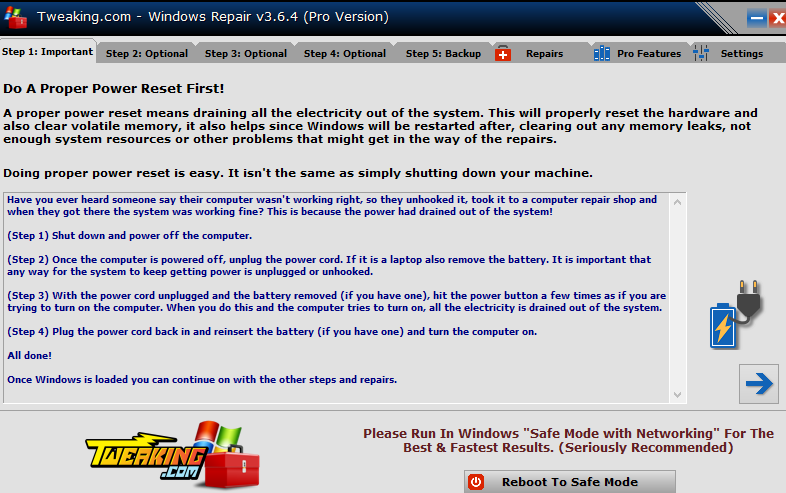 Windows Repair是一个全能型的系统修复工具,能将你的Windows恢复到初始设置。可以帮你解决诸如注册表权限问题、IE、自动更新、防火墙等等一系列故障。