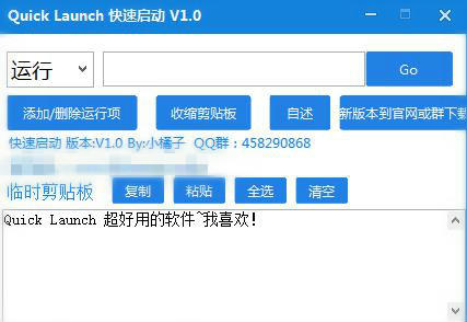 Quick Launch 快速启动是一款绿色小巧的软件快速启动工具,玩电脑的时候,打开一个文件真是太麻烦了,还有怎么能够快速搜索呢?在网上找到一个好片段,怎样快速保存呢?现在有了橘子启动器,一切都是浮云!Quick Launch启动器可以大大节约您在打开文件或搜索内容时浪费的时间,高效率高速度不墨迹懒人必备!