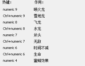 以下是冒险岛2中文版修改器的热键及作用说明