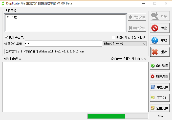 重复文件扫描专家是一个简单的重复文件查找和清理工具。在被指定文件夹后,只需点击扫描即可快速扫描出文件夹里的重复文件。还可以指定文件类型和子目录。非常实用,有需要的同学可以下载尝试一下。